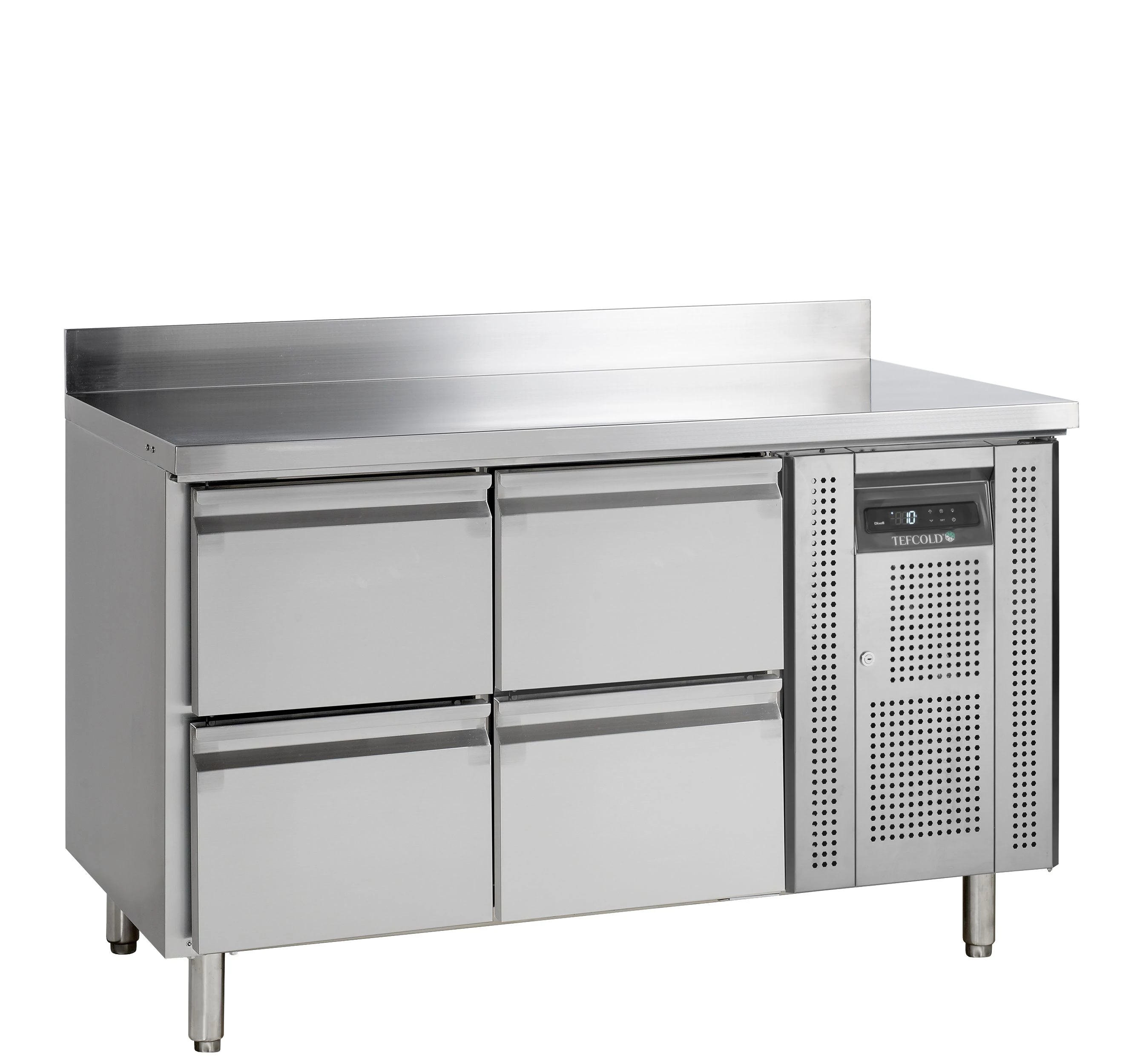 Rozsdamentes hűtött munkaasztal, 4 fiókos - oldalsó kompresszor